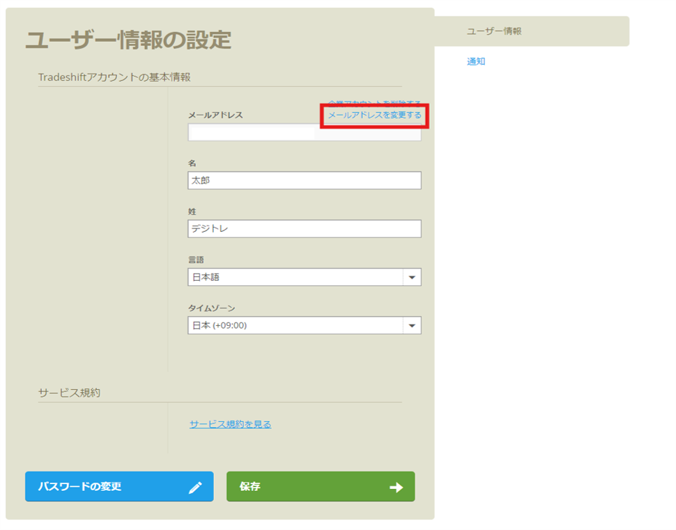 Tradeshiftアプリのプライマリーユーザーの変更は、メールアドレスを変更し、パスワードを再設定していただくことで可能です。