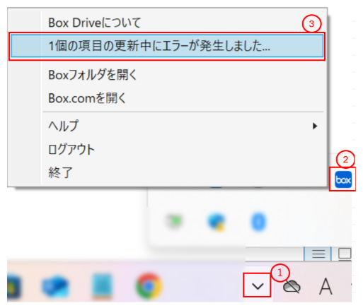 Q1: Box Driveでエラー通知が表示された場合の確認・解決手順