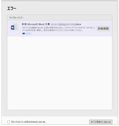 3. 「○個の項目の更新中にエラーが発生しました」3を選択